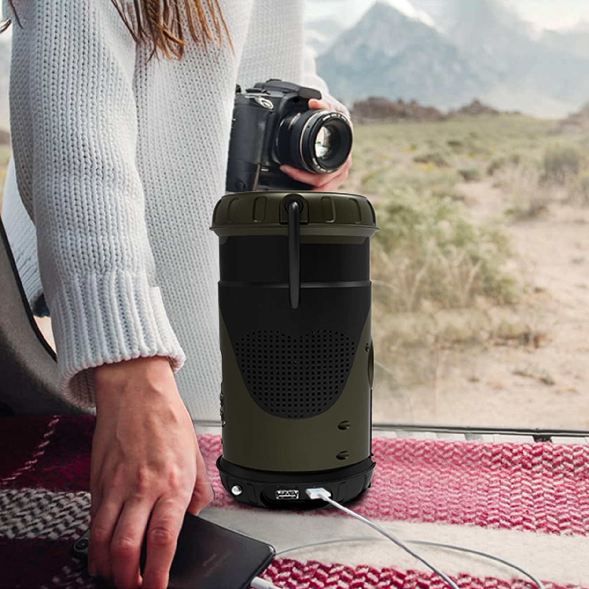 Equipped with DAB/FM/AM radio panel and receiving great and stable, 2 * 5W Stereo Sound Speakers.Illuminate your camping experience!